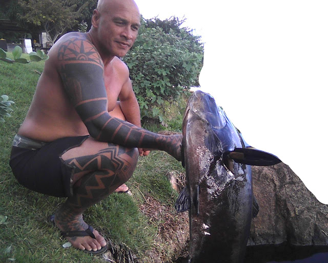 This monster fish kind of looks like a mix breed of a pirahna and a carp? He said there are more in the waters there so next time he goes spearing for river monsters I'm coming with my camera. I think people will freak out if they saw this on Hawaii Skin Diver TV. Congrats Joe on the fresh water catch of the day!