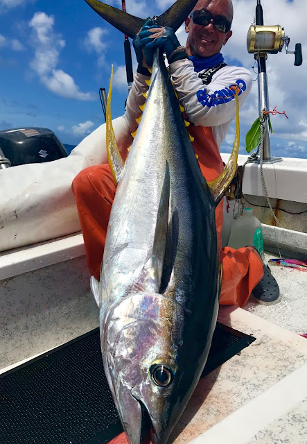 Even with all his years of fishing this was a first. Fishing is fun but can be very dangerous if you are not experienced. After we took care of the fish and I had to fix my motor way out at sea, lucky for 2 motors and a good mechanic friend I called with poor reception I was able to fish again. I turned back out and reset my lines and 15 minutes later BAM! This time my 130 Shimano reel breaks down and won't crack. Whaat! We end up hand lining the fish in and last 100 yards put the line in a bucket because the reel was full. Kui was beat after no. 2 ahi so I pulled in my lures and headed in early!